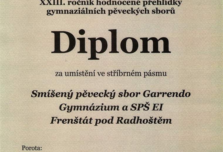 SPS Garrendo se ve dnech 6. 4. -8. 4. 2017 zúčastnil XXIII.ročníku celostátní soutěže gymnaziálních sborů Gymnasia cantant, které se konalo v Brně.