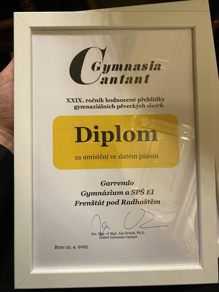 Podpora všech fanoušků Garrenda se projevila, pěvecký sbor si odváží ocenění odborné poroty - umístění ve zlatém pásmu a zvláštní ocenění za provedení povinné skladby Jiřího Pospíšila s názvem Pošlu ti psaníčko.