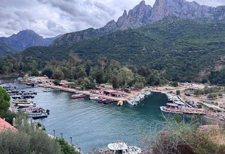 Naši základnu jsme měli na východním pobřeží, v městečku Ghisonaccia, ve čtyřhvězdičkovém areálu Perla Mare. Ten je velmi rozlehlý, kufry nám dokonce odvezli velkou multikárou. Po ubytování v mobilhome (po čtyřech osobách) jsme vyzkoušeli teplotu moře, byla skvělá!