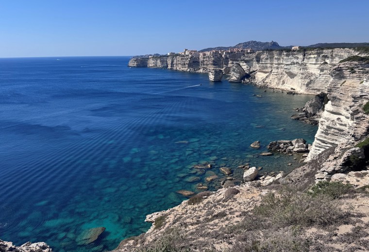 V neděli jsme vyrazili na první výlet na jih ostrova do městečka Bonifacio, kde jsme měli objednanou přibližně hodinovou soukromou plavbu kolem útesů a k jeskyni. Následně jsme sestoupili 183 schodů Escalier du Roi d’Aragon (Schody aragonského krále). Legenda praví, že je nechal během jediné noci vytesat aragonský král Alfons V., když v roce 1420 obléhal město. Ve skutečnosti však archeologové naznačují, že první schody mohli vyhloubit už mniši, kteří je používali k přístupu ke sladkovodní studni na úpatí útesu. Ať už je pravda jakákoli, výsledek je ohromující, někteří z nás si však sáhli skoro na dno! Měli jsme štěstí, právě probíhaly Dny kulturních památek, a tak jsme měli vstup v helmách zdarma. Po obědové pauze jsme si prošli městečko a absolvovali krátký trek po útesu.