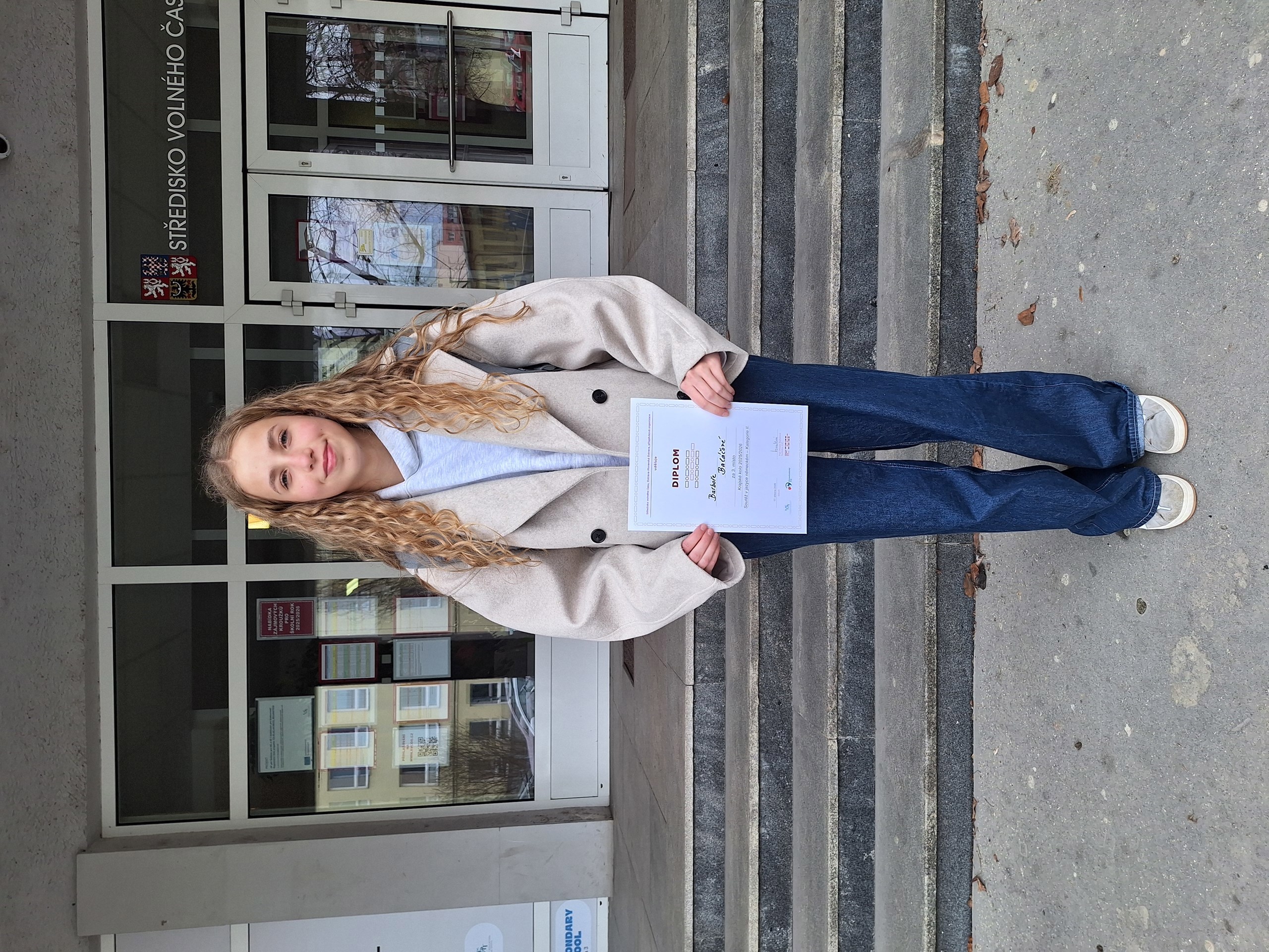 Dne 17. března se v Ostravě konalo krajské kolo olympiády z německého jazyka, kterého se v kategorii II zúčastnila i naše žákyně Barbora Baláčová (4A).