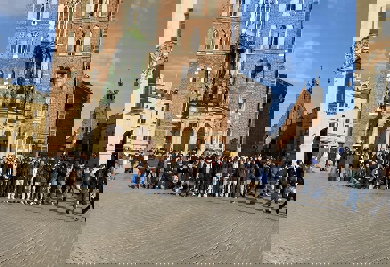 Dále exkurze pokračovala do Krakova na hrad Wawel s gotickou katedrálou, místem korunovace polských králů, kde se dnes nachází jejich ostatky. Z wawelského pahorku s krásnou viditelností na řeku Vislu jsme sešli na krakovské Hlavní náměstí s pouličními kavárnami a Mariánským kostelem, kde jsme se občerstvili a do odjezdu se kochali zdejšími historickými památkami.